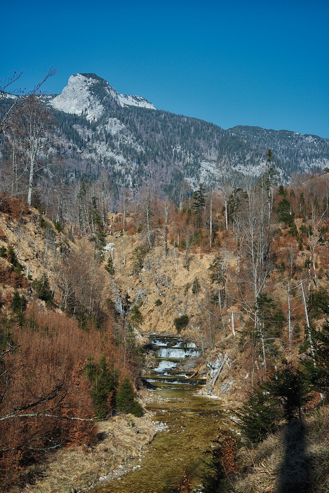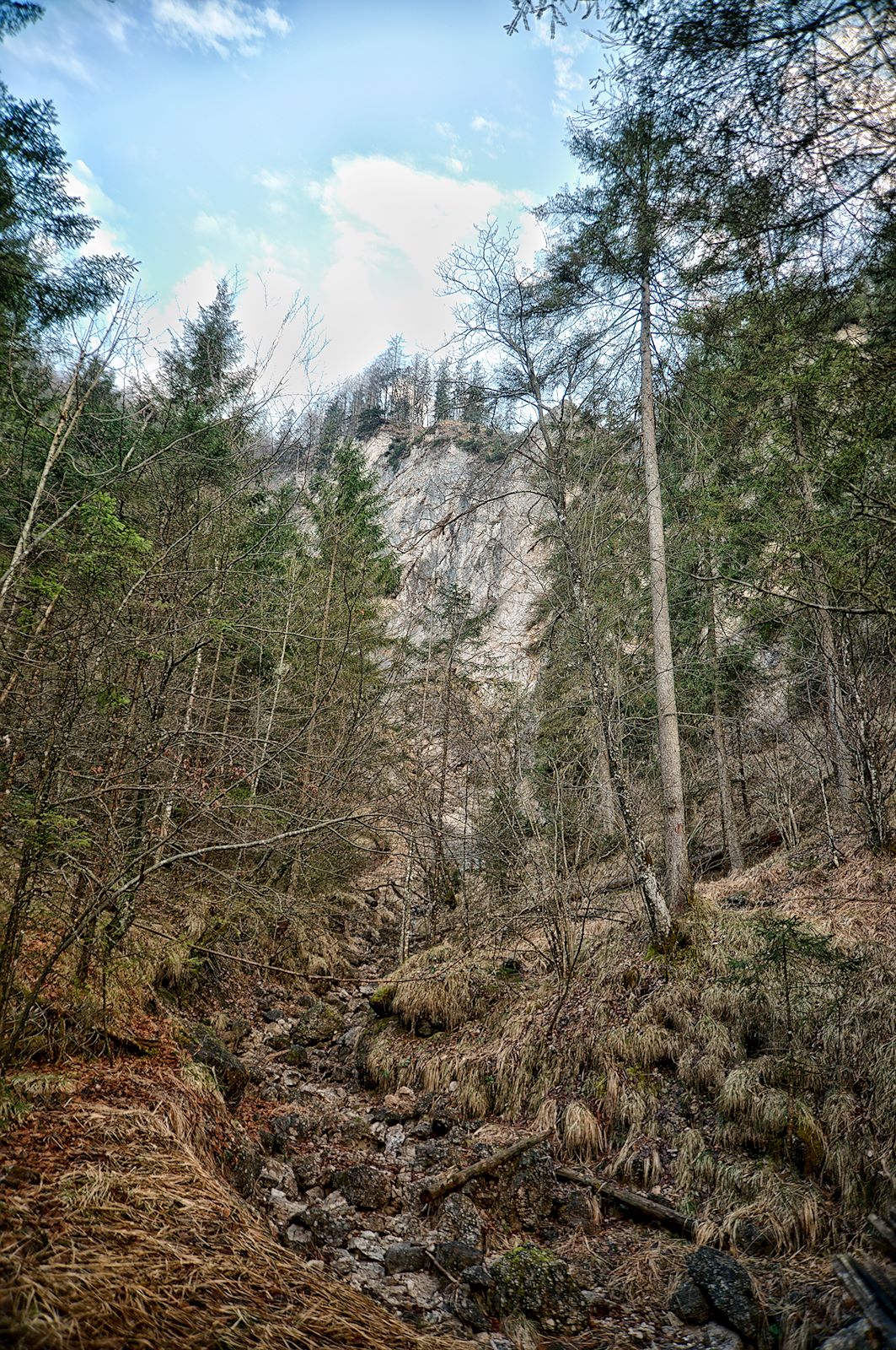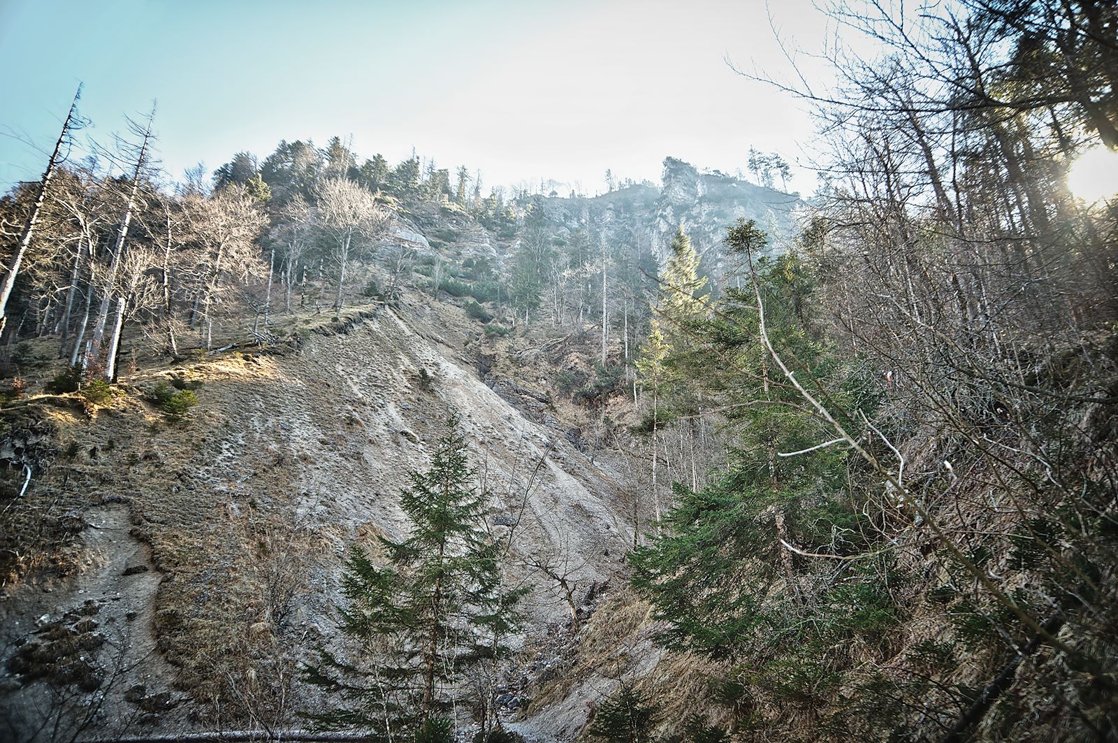 Und das Weißenbachtal weist eine Besonderheit auf, die man im zersiedelten Österreich heute kaum noch findet: Es ist vollkommen unbewohnt, abgesehen von den Taleingängen natürlich. Unbewohnt heißt nicht unbewirtschaftet oder gar unerschlossen. Neben forstwirtschaftlicher Nutzung gibt es auch Steinbrüche und natürlich die recht stark befahrene Straße, die das Tal durchzieht.