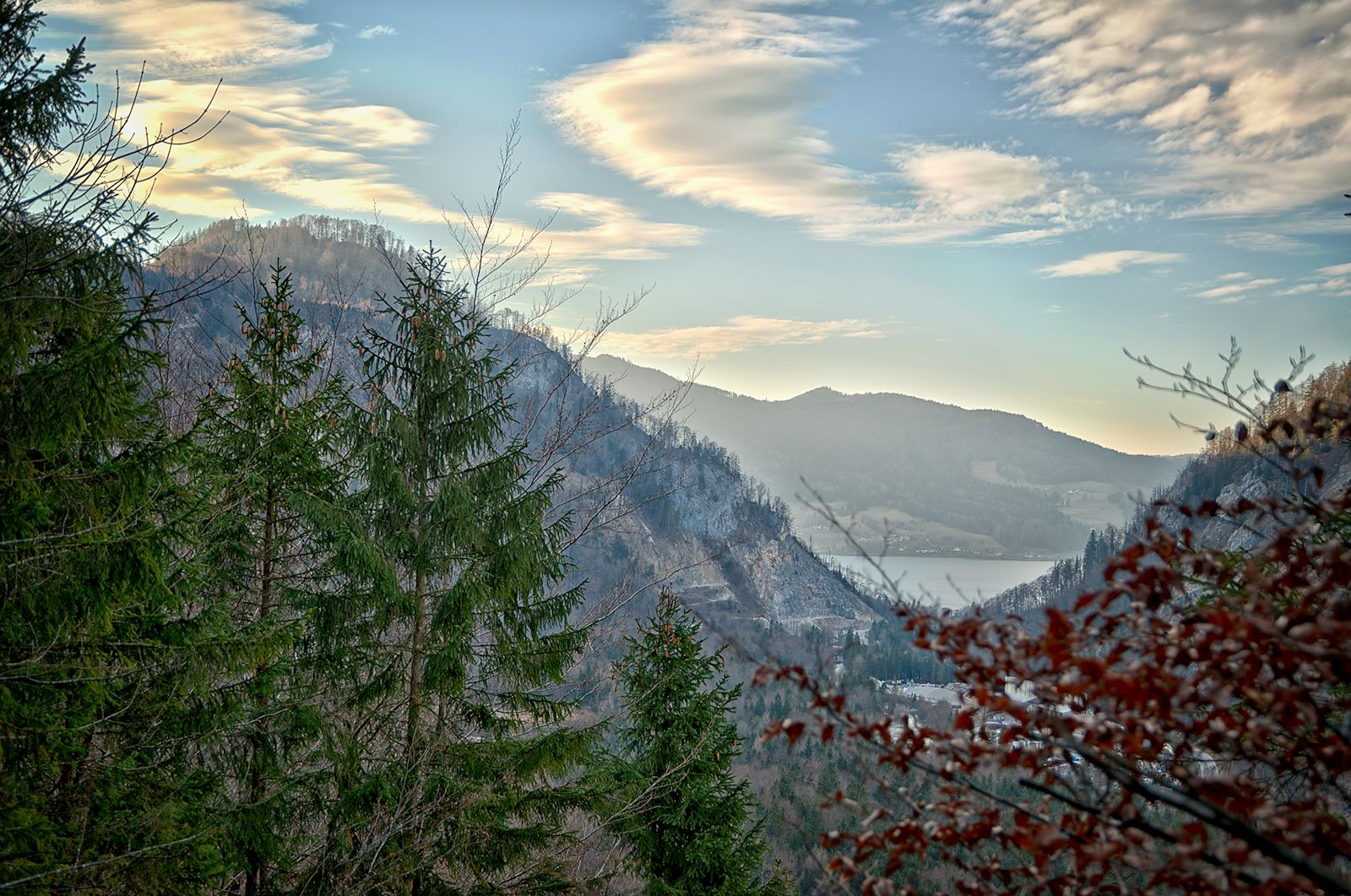 Wieder lockt uns der wolkenlose Himmel in das Salzkammergut. Dieses Mal geht es in das Weißenbachtal am Attersee. Das Weißenbachtal ist ein Durchgangstal, das den Attersee mit dem Trauntal zwischen Bad Ischl und Ebensee verbindet. Nördlich des engen Tals erhebt sich das Höllengebirge, südlich der Leonsberg. Klingt verwirrend? Ein Blick auf die Karte macht es klarer: