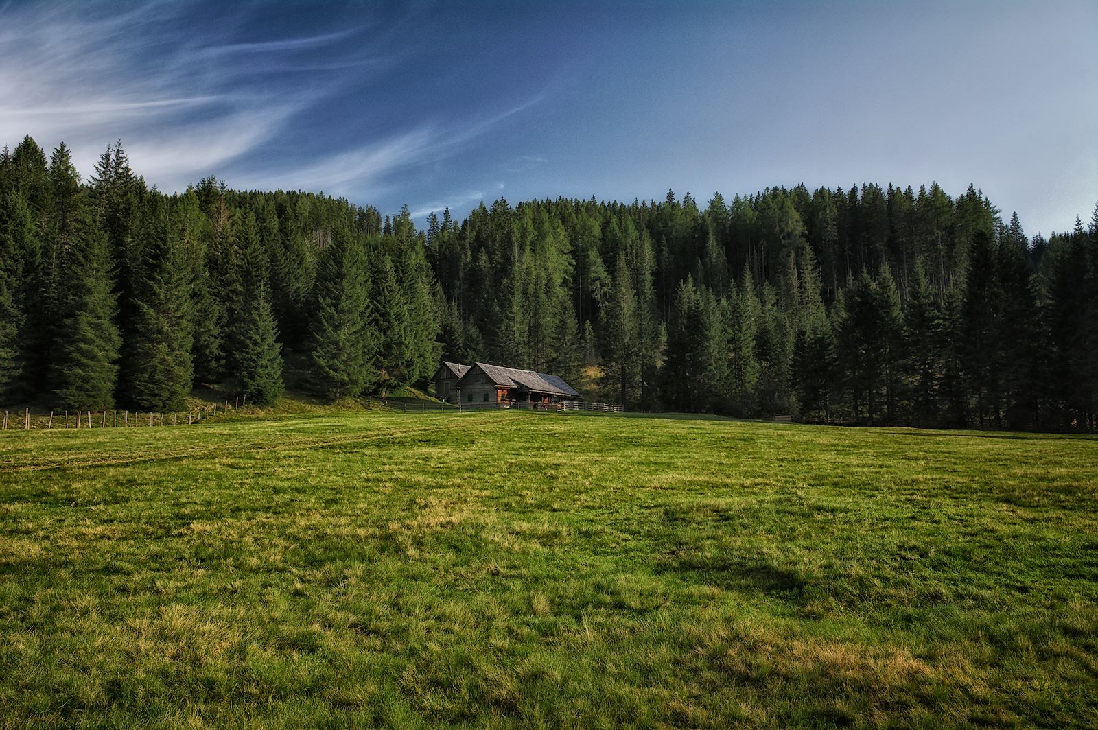 Die Ludlalm liegt direkt an der Straße, nordwestlich des Seeufers.