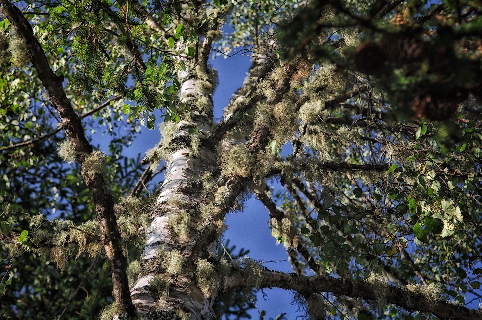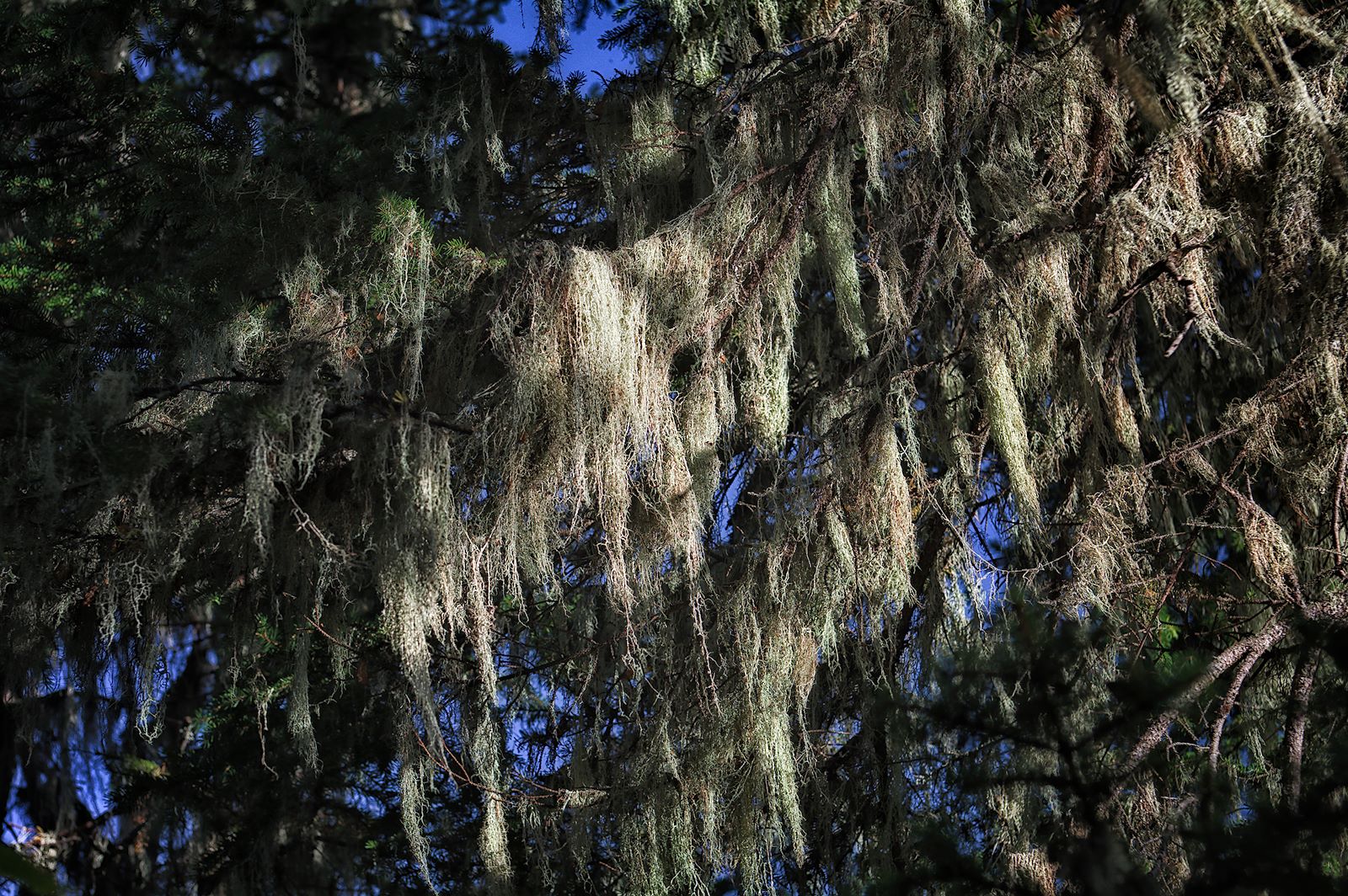 Üppiger Flechtenbewuchs zeugt nicht nur von hoher Luftfeuchtigkeit sondern auch von einer sehr sauberen, schadstoffarmen Luft. Denn Flechten gelten aufgrund ihrer Empfindlichkeit gegenüber Luftverschmutzung als Indikator für gute Luft.