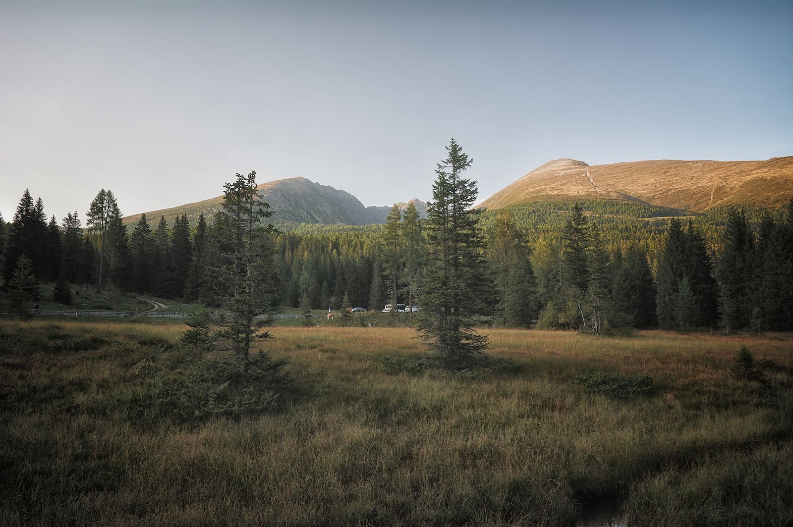 Es ist eine schmale und kurvige Landstraße, die uns von Tamsweg, der Hauptstadt des Lungaus, auf 1.514 Meter Seehöhe bringt. Hier, am Fuße des Prebers, liegt – eingebettet in ein Moorgebiet – der kleine See. Er ist ein Relikt der letzten Eiszeit, ein sogenanntes Toteisloch, und wird von umliegenden Mooren und kleinen Bächen weiterhin mit Wasser gespeist. An seiner dunklen Oberfläche spiegelt sich der markante 2.740 Meter hohe Preber. Unweigerlich fühlt man sich in eine andere Welt versetzt, in der die Zeit langsamer verläuft und zu der Stress und Hektik des Alltags keinen Zutritt haben.