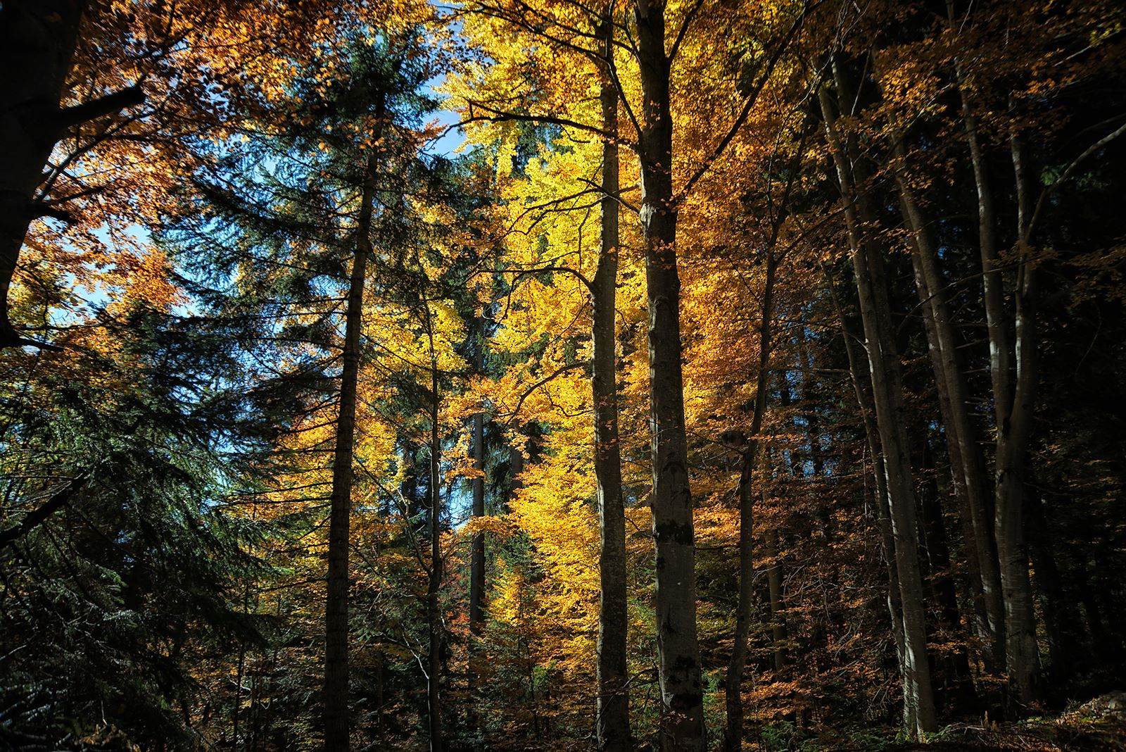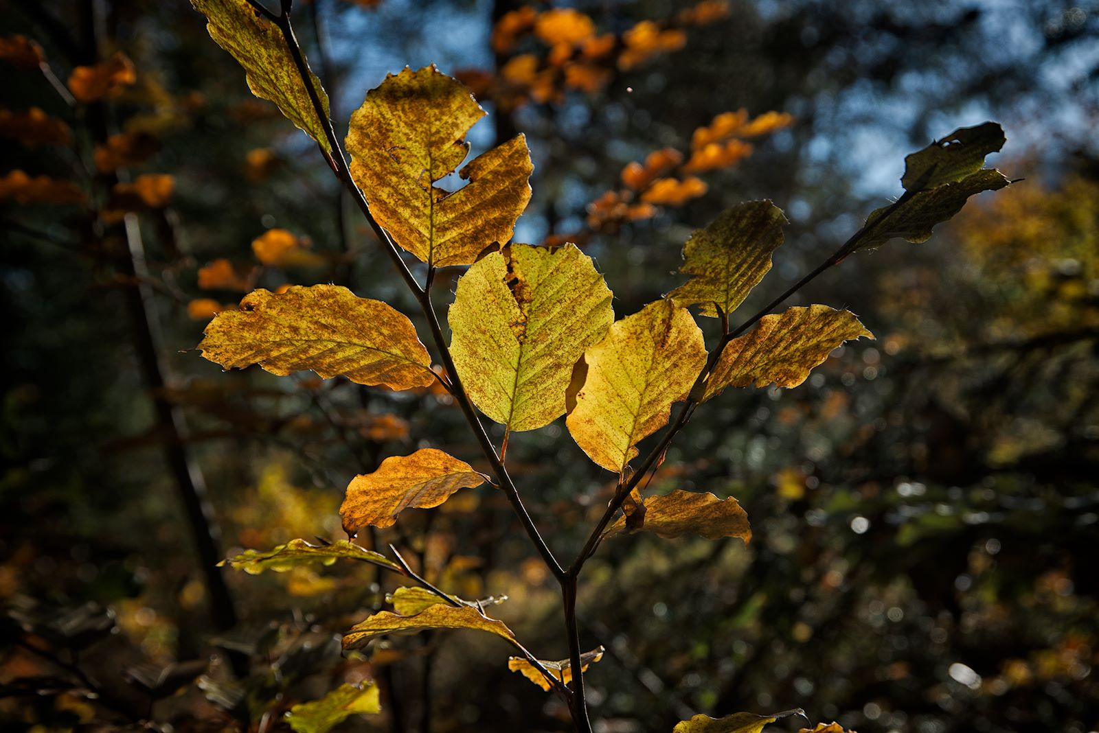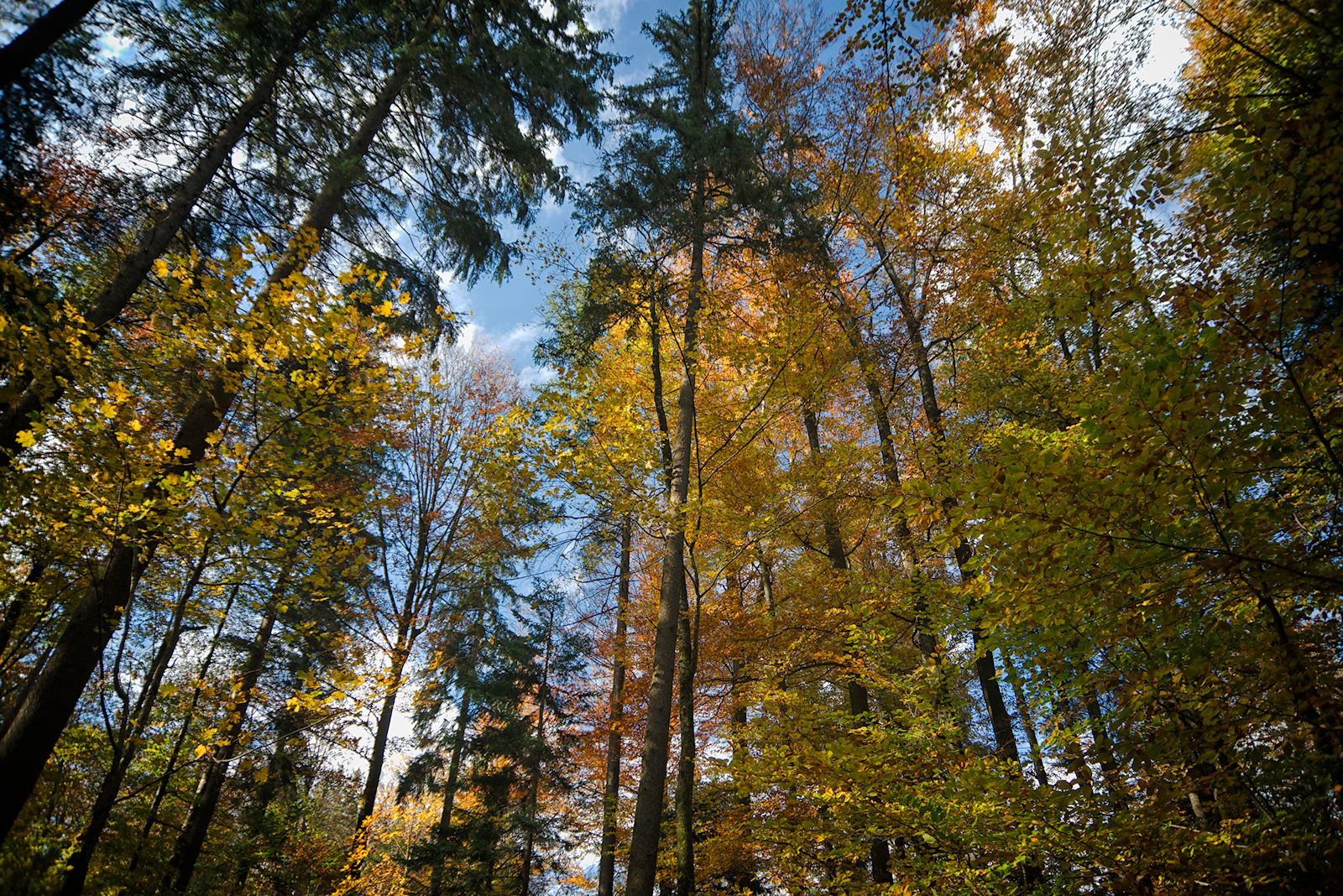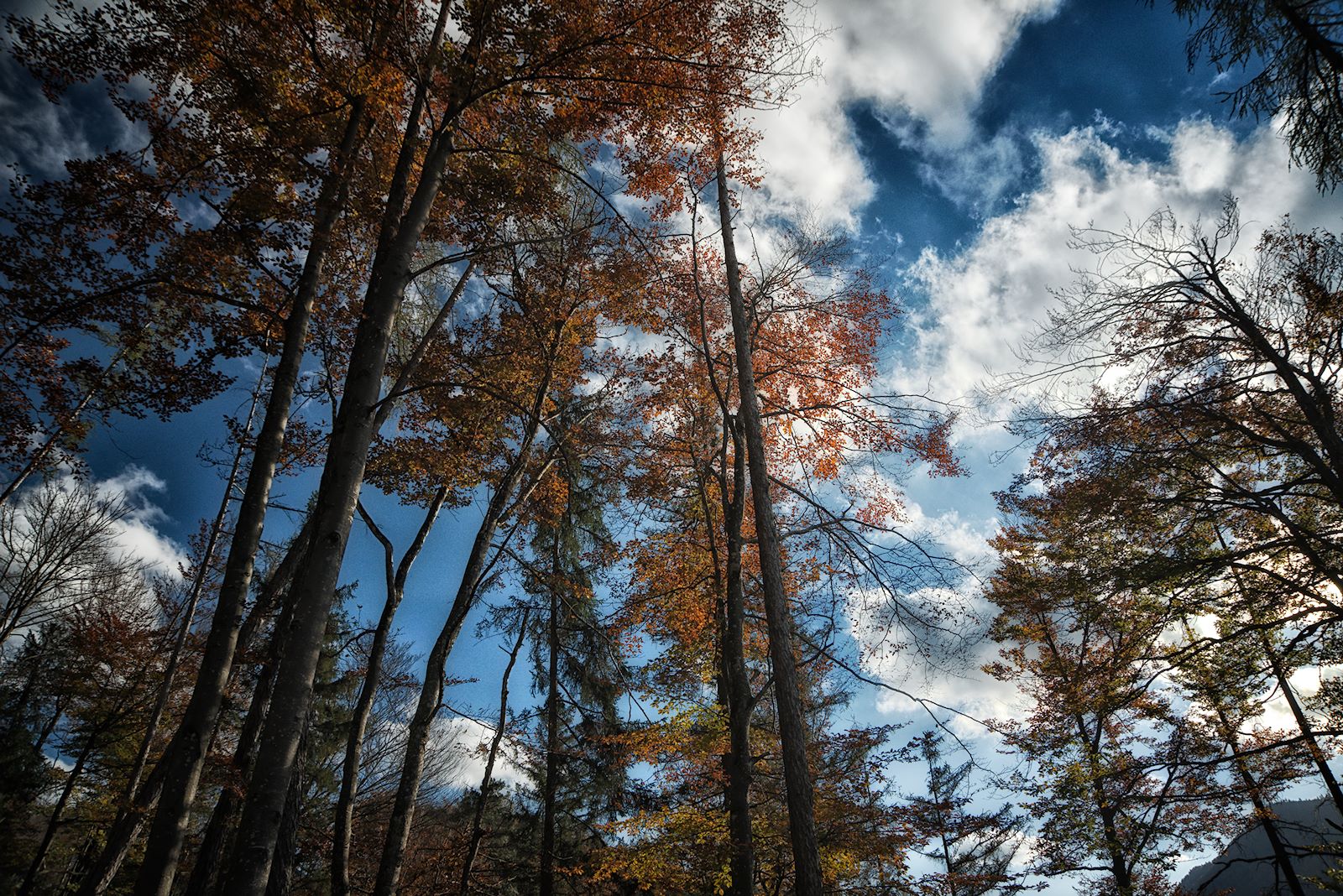 Da erzähle ich vor ein paar Tagen erst, dass viele Bäume noch ganz grün sind und dann das: Eine Kaltfront mit Herbststurm und Frostnächten später ist alles ganz anders. Als hätte jemand einen Schalter umgelegt, ist das Grün innerhalb weniger Tage aus dem Blätterdach verschwunden. Grund genug, ein kleines Update aus dem Wald zu liefern.