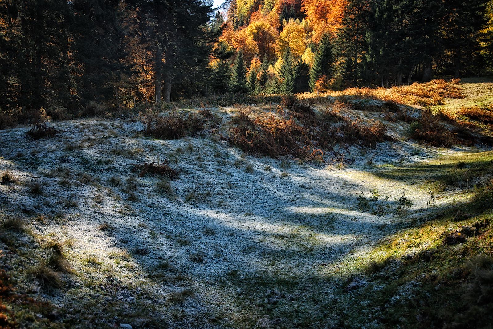 Die ersten Frostnächte hinterlassen ihre Spuren. Um sie zu sehen, musst du aber schnell sein, denn die Sonne zerstört die frostigen Gebilde innerhalb von Minuten.