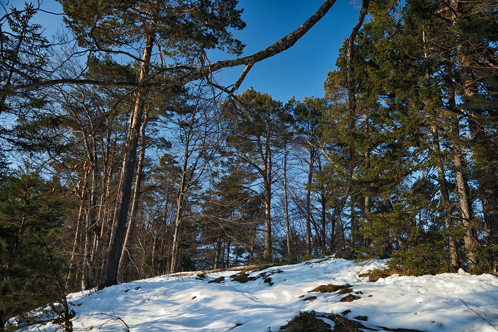 Wir wandern nun durch einen Schneeheide-Kiefernwald, wie er heutzutage nicht mehr allzu oft anzutreffen ist. Also bitte auf dem Weg bleiben, auch wenn die dichten Schneeheidebüsche geradezu einladen, sich rein zu legen. Heute liegen sie jedoch selbst – begraben unter der Schneedecke.