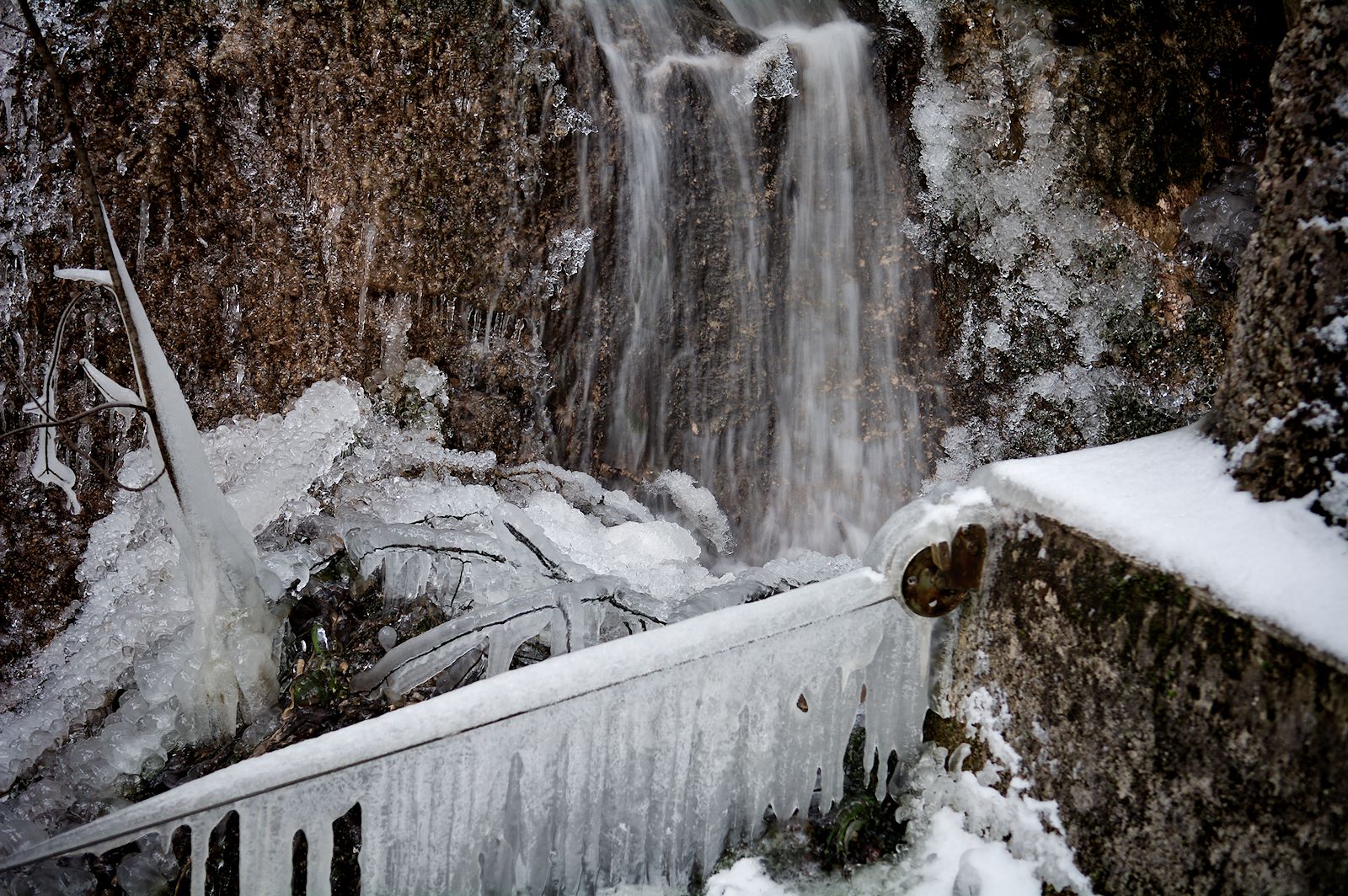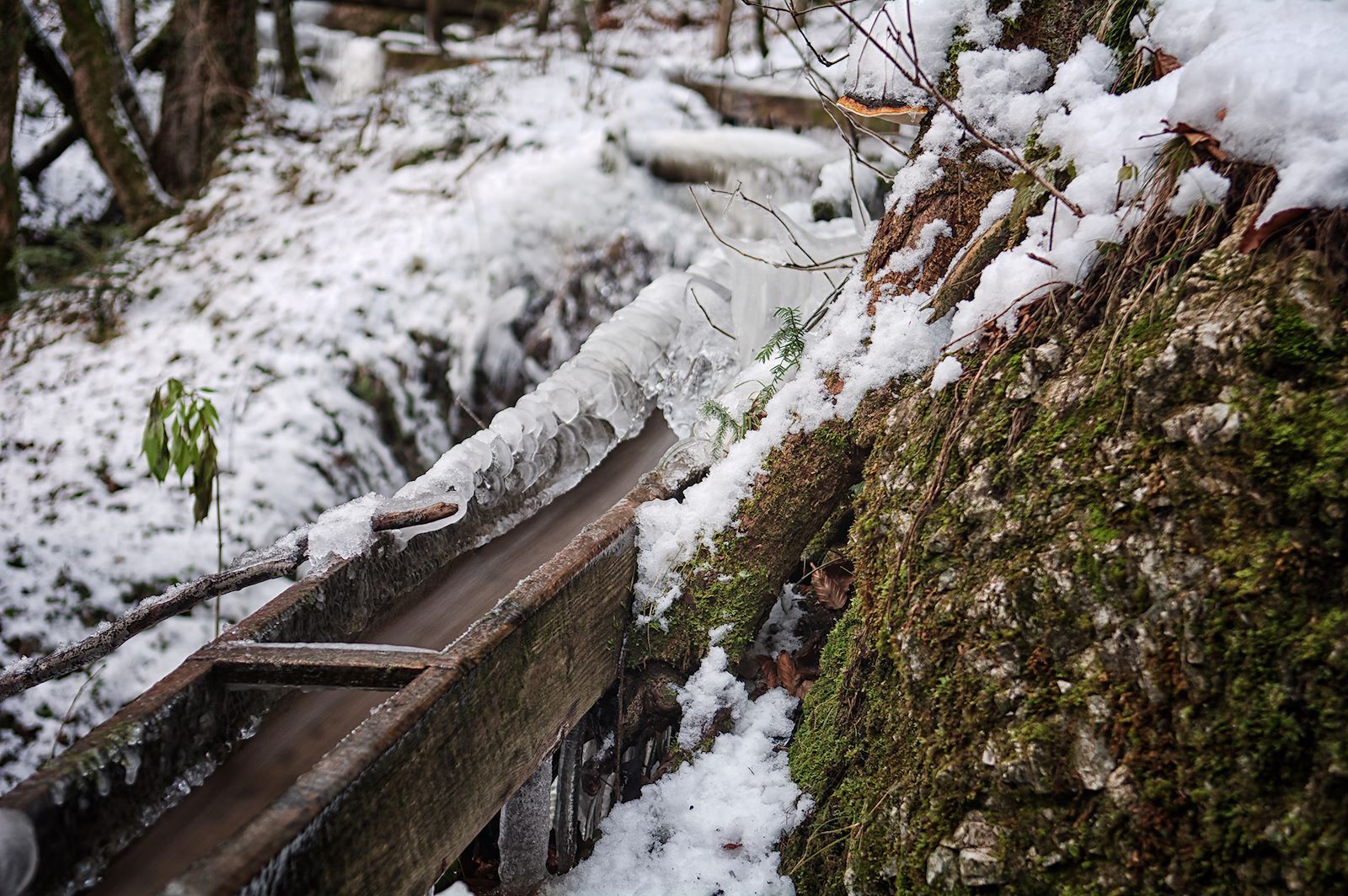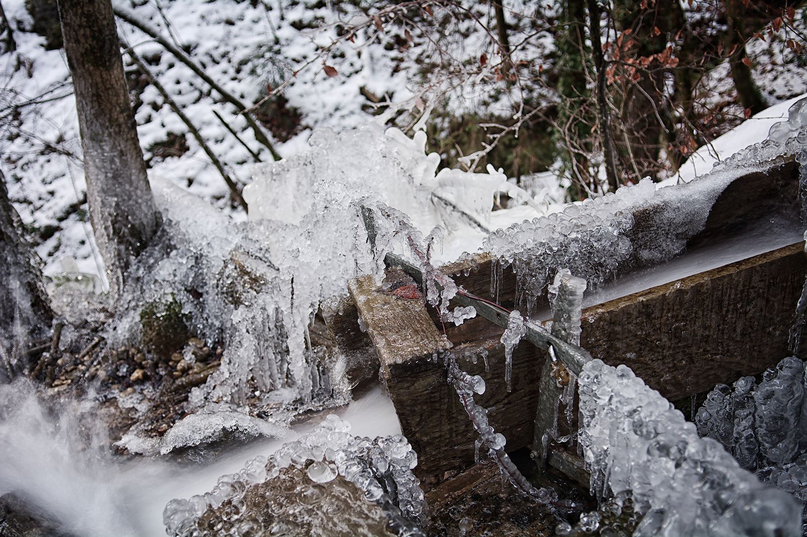 Für Eis ist es heute zu warm. Da die Plötz eine schattige Schlucht ist, ist es jedoch sehr wahrscheinlich, dass man im Winter vereiste Wasserfälle und Wasserrinnen antreffen wird. Deshalb habe ich aus meinem Fotoarchiv auch von diesem frostig-spektakulären Ereignis ein paar Eindrücke rausgesucht: