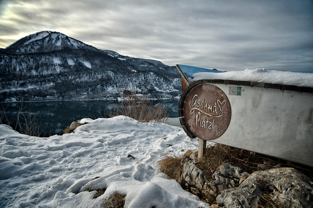 Wir befinden uns an einem sogenannten „Gschma-Platzl“, wobei das „a“ als „oa“ ausgesprochen wird. Der Ausdruck stammt aus dem lokalen Dialekt des Salzkammerguts und ist mir auch nicht geläufig. Übersetzen würde ich ihn mit „schön“, „gemütlich“ oder „zufrieden“. „Chillig“ würde man vielleicht auf neudeutsch sagen.