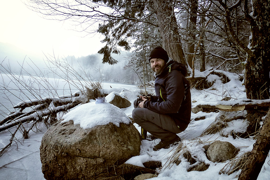 Sehr lange dauert unsere Pause nicht, zu frostig sind die Temperaturen, um es ohne Bewegung auszuhalten. Selbst der heiße Tee kann da nicht wirklich abhelfen. Am Südufer des Sees wird das Gelände steiler, der Weg herausfordernder, vor allem weil es stellenweise auch eisig ist. Doch nachdem sogar ein mit seiner Großmutter vor uns laufender, geschätzt Vier- bis Fünfjähriger problemlos und beneidenswert unbekümmert die vereisten Stellen meistert, sollte der Weg auch für weniger Geübte machbar sein.
