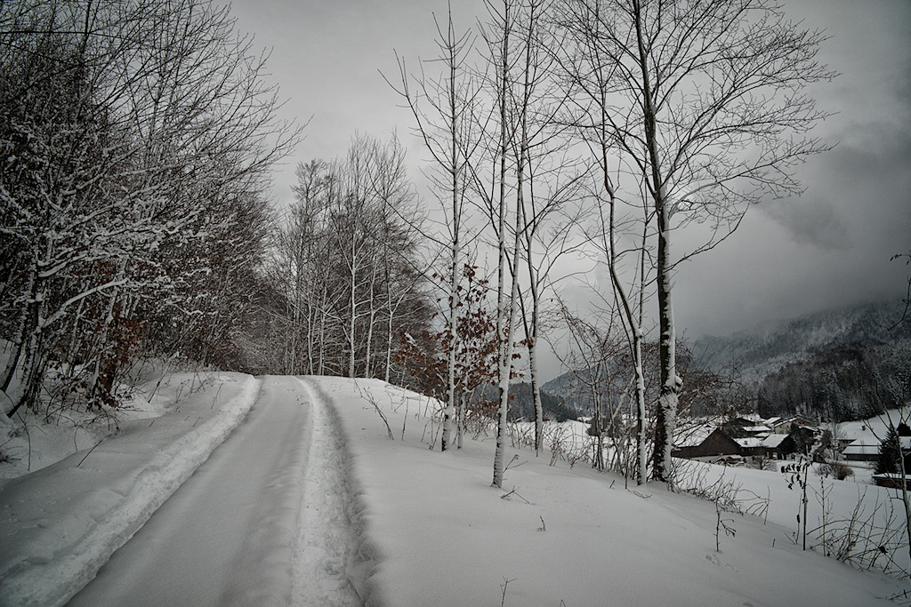 Ausgerüstet mit Skihose und Winterwanderstiefeln geht es los. Die ersten paar Meter auf der geräumten und gesalzenen Straße stellen noch keine Herausforderung dar. Dann vielleicht der bald nach rechts abzweigende Wanderweg zur Rumingmühle? Aber sogar dieser beliebte Spazierweg ist bereits geräumt und problemlos begehbar. Das muss man der Gemeinde Fuschl am See lassen: Die Spazierwege werden zu jeder Jahreszeit sehr gut gepflegt.