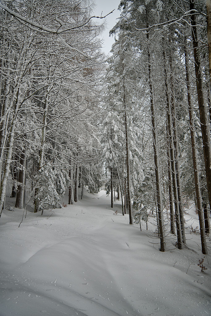 Lawinengefahr: keine, das Gelände ist nur am Steig zum Mozartblick steil, verläuft jedoch durch Wald