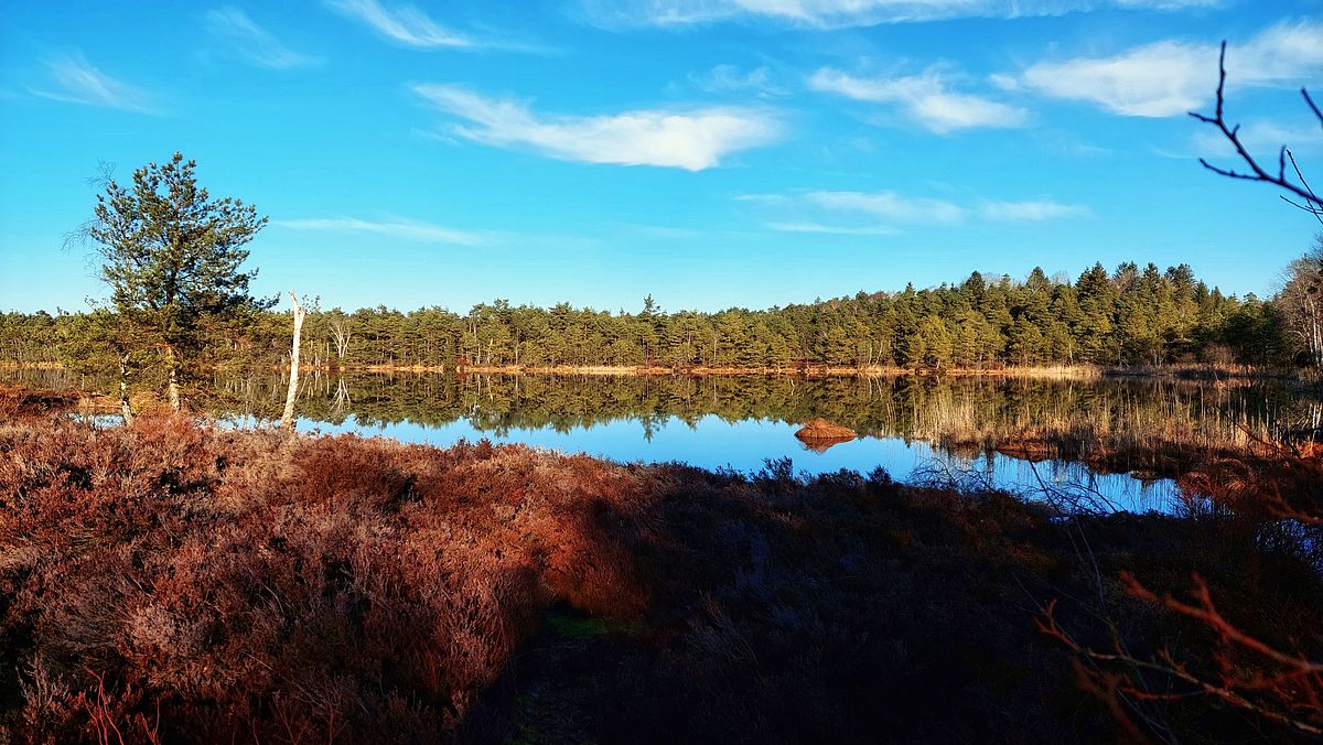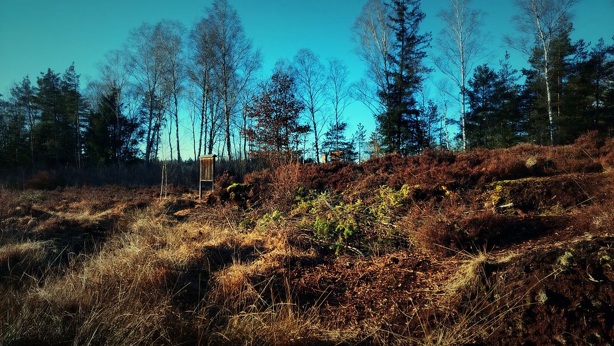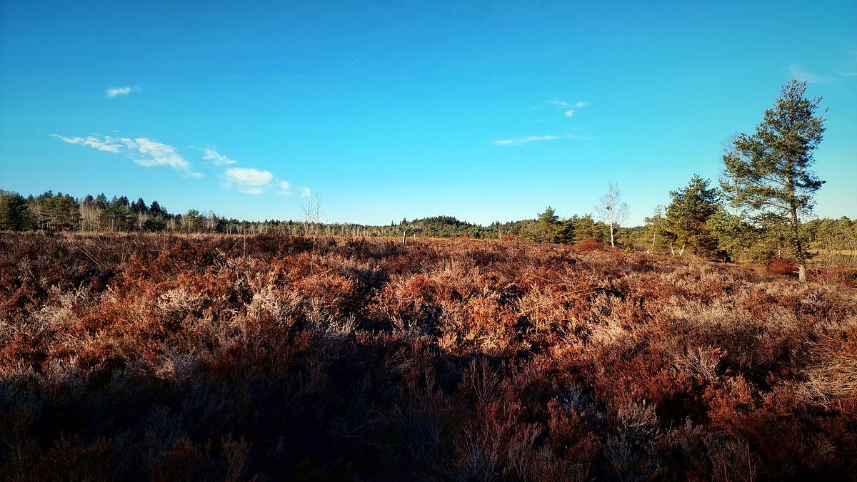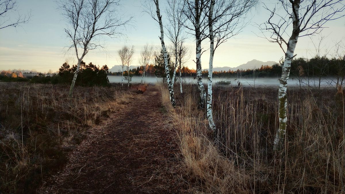 Nicht alle entwässerten Flächen wurden aufgeforstet. Manche ließ man einfach brachliegen, um später vielleicht einmal leichter an den Torf gelangen zu können. Sie verwandelten sich im Laufe der Jahrzehnte in Heide. Die Charakterpflanze dieser Landschaftsform ist die Besenheide. Im Spätsommer verwandelt sie den Schönramer Filz in ein Meer aus rosa Blüten. Heute zeigen sie sich aber in ihrem rostfarbenen Winterkleid. Aber auch Pioniergehölze wie Birke oder Waldkiefer haben sich einigerorts angesiedelt und verwandeln die Zwergstrauchheide zunehmend in Wald. Die allermeisten baumlosen Flächen, die du vom Rundweg aus sehen kannst, sind übrigens Heide. Es gibt zwei Möglichkeiten, wie mit den großen Heideflächen in Zukunft verfahren werden kann: Entweder man vernässt sie wieder und führt sie zurück in ein Hochmoor, oder man findet Methoden, sie auf Dauer baumfrei zu halten, zum Beispiel durch Beweidung. Unternimmt man nichts, so wird sich die Heide in wenigen Jahrzehnten in Wald verwandelt haben.
