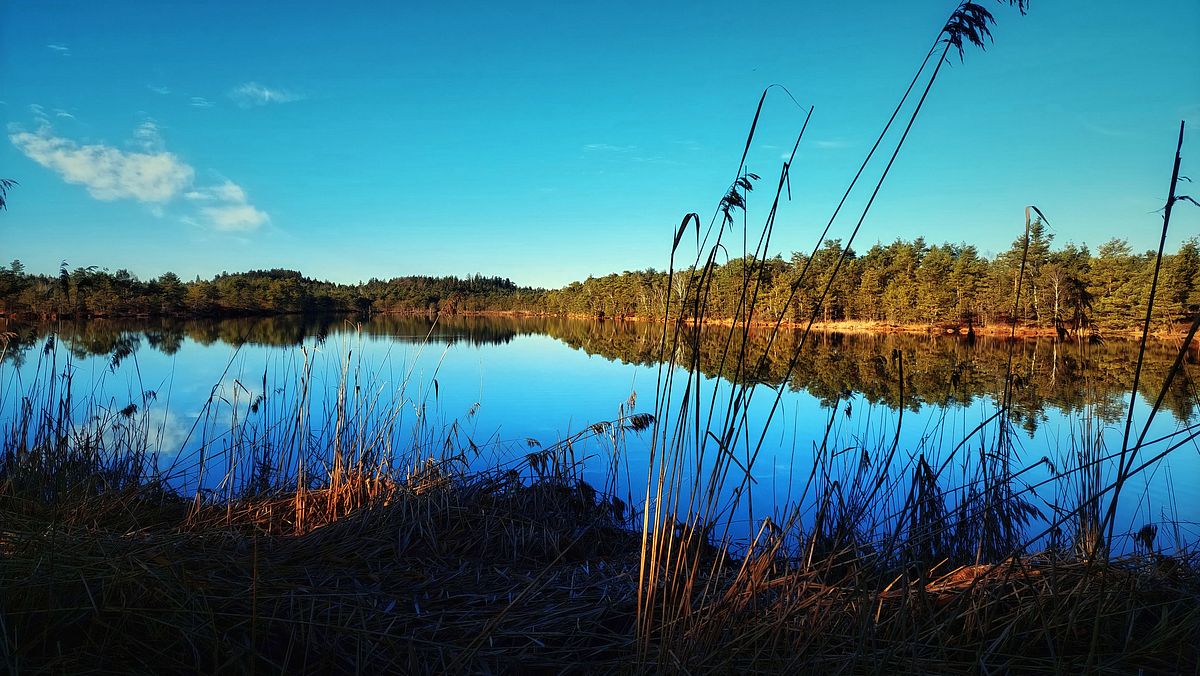 Der Besucherstrom ist mittlerweile abgeebbt. Heute waren unglaublich viele Menschen im Schönramer Filz unterwegs. Familien mit Kindern, Familien mit Hunden, Familien mit Kindern und Hunden, in die Natur verlegte Verwandtschaftstreffen, alle waren sie heute anzutreffen. Nun kehrt Stille ein rund um den Moorsee, nur ein paar Jogger ziehen ihre einsamen Runden. Welch ein schöner, ruhiger Ausklang.