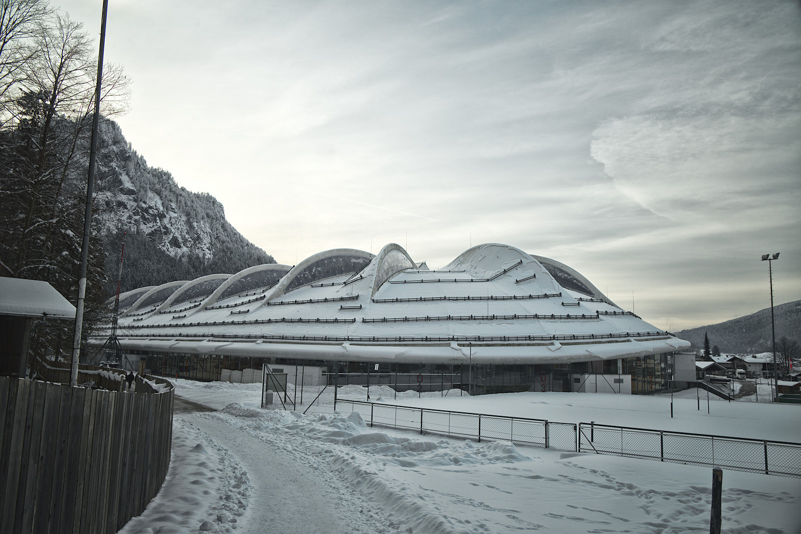 Der Rundweg um den Falkenstein führt direkt am großen Eisstadion, der Max Aicher Arena, vorbei. Dieses ist der ideale Ausgangspunkt und bietet zudem kostenlose Parkplätze.