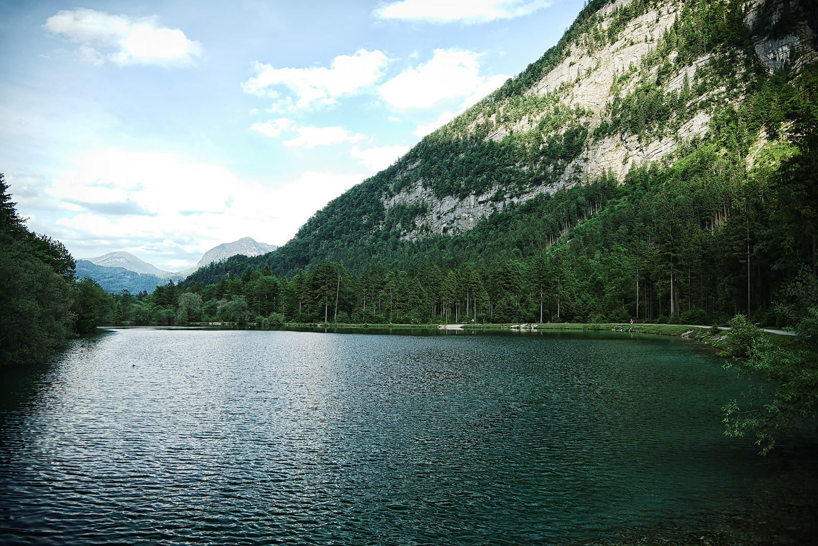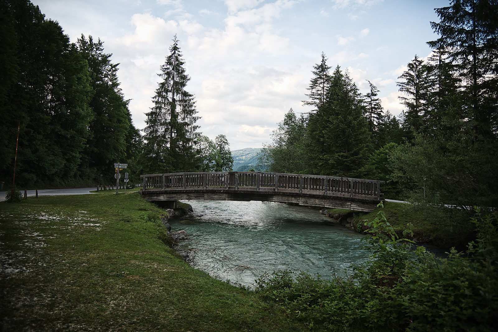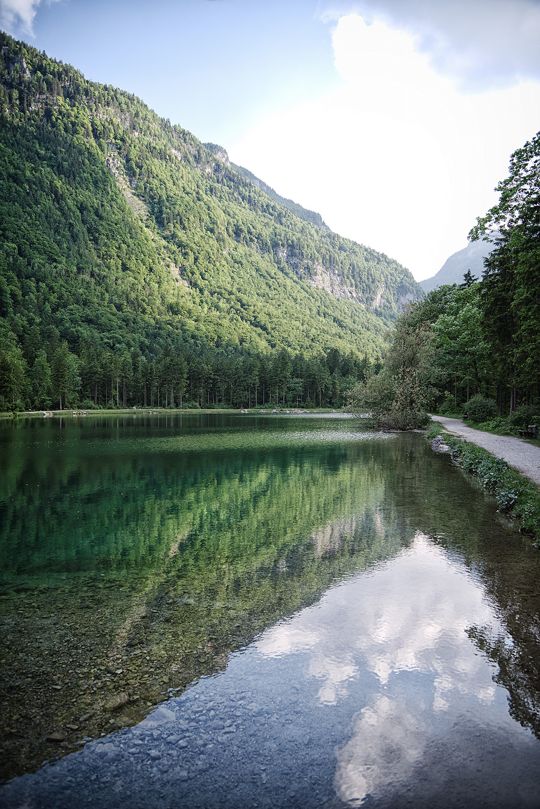 Nach der Umrundung folgen wir dem Weg zum Unteren Bluntausee und überqueren bald darauf eine weitere Brücke über den Torrener Bach. Der Forstweg auf der anderen Seite bringt uns wieder hinaus aus dem wunderbaren Bluntautal.