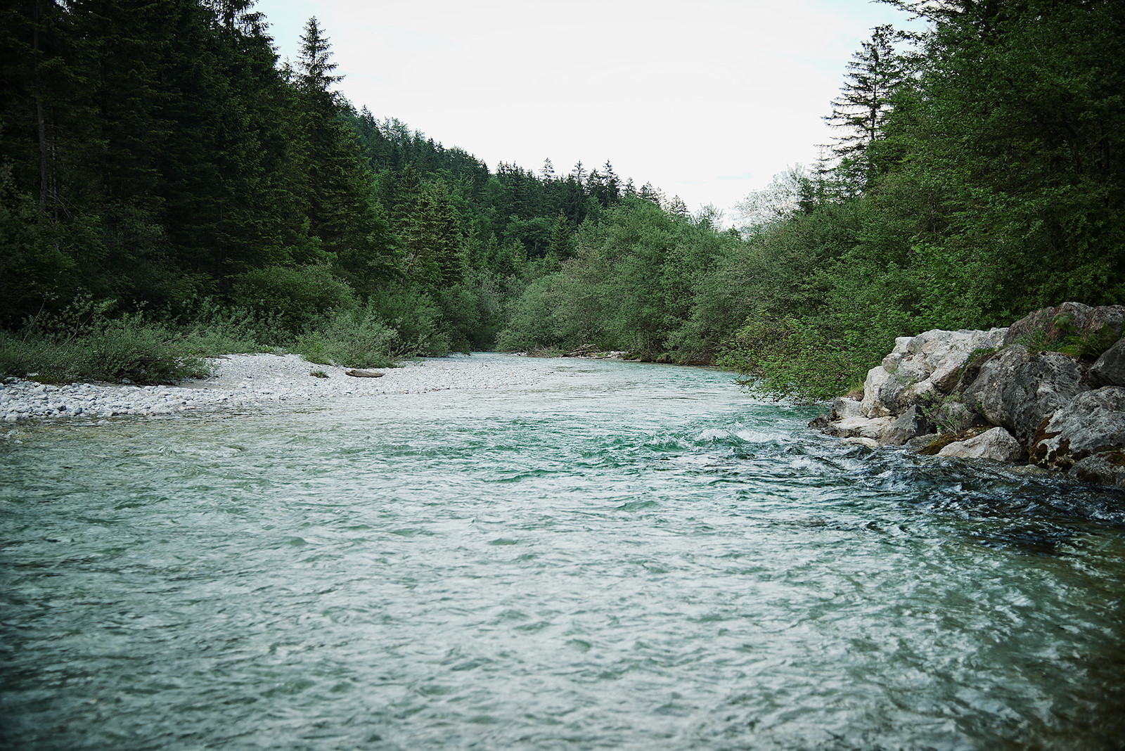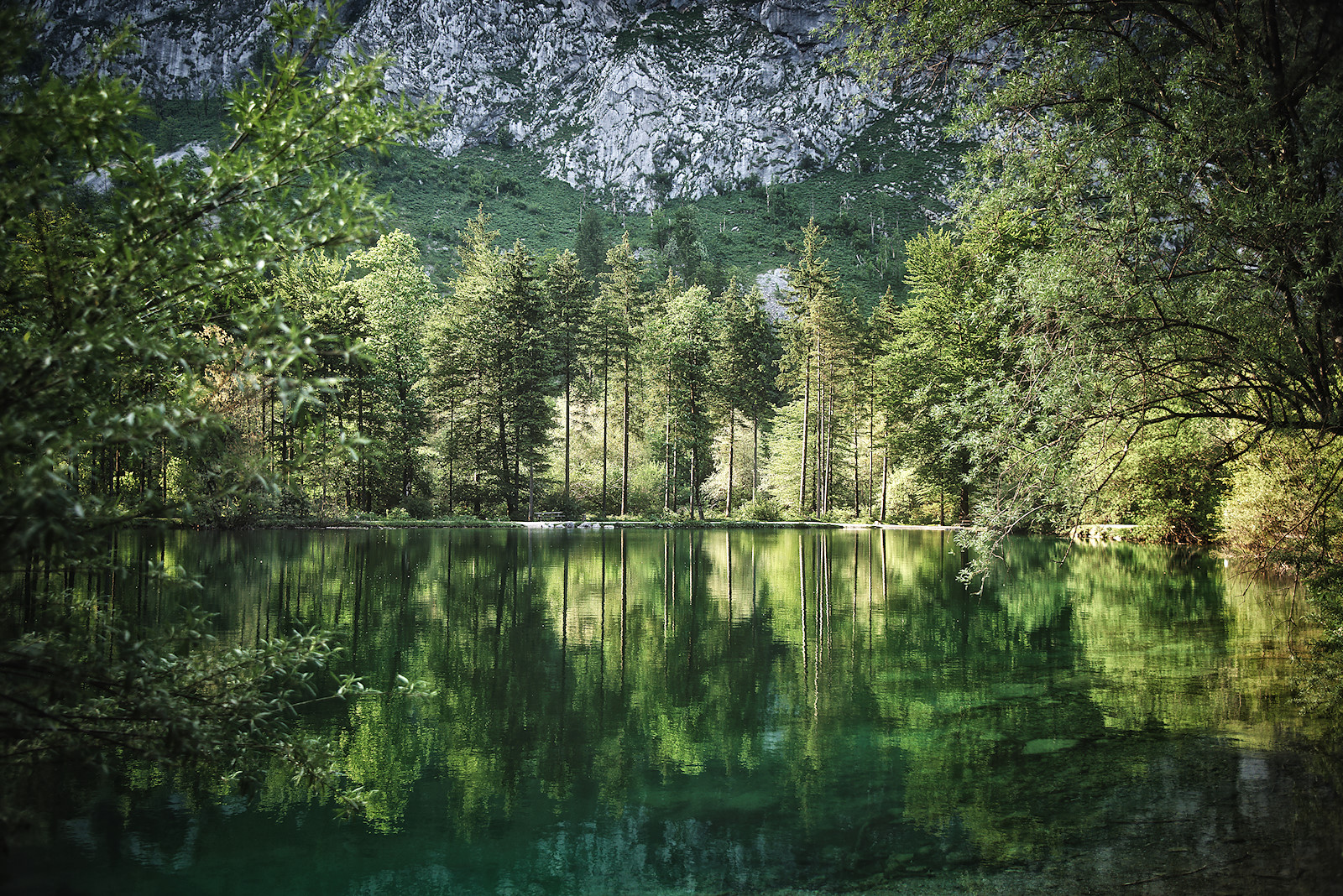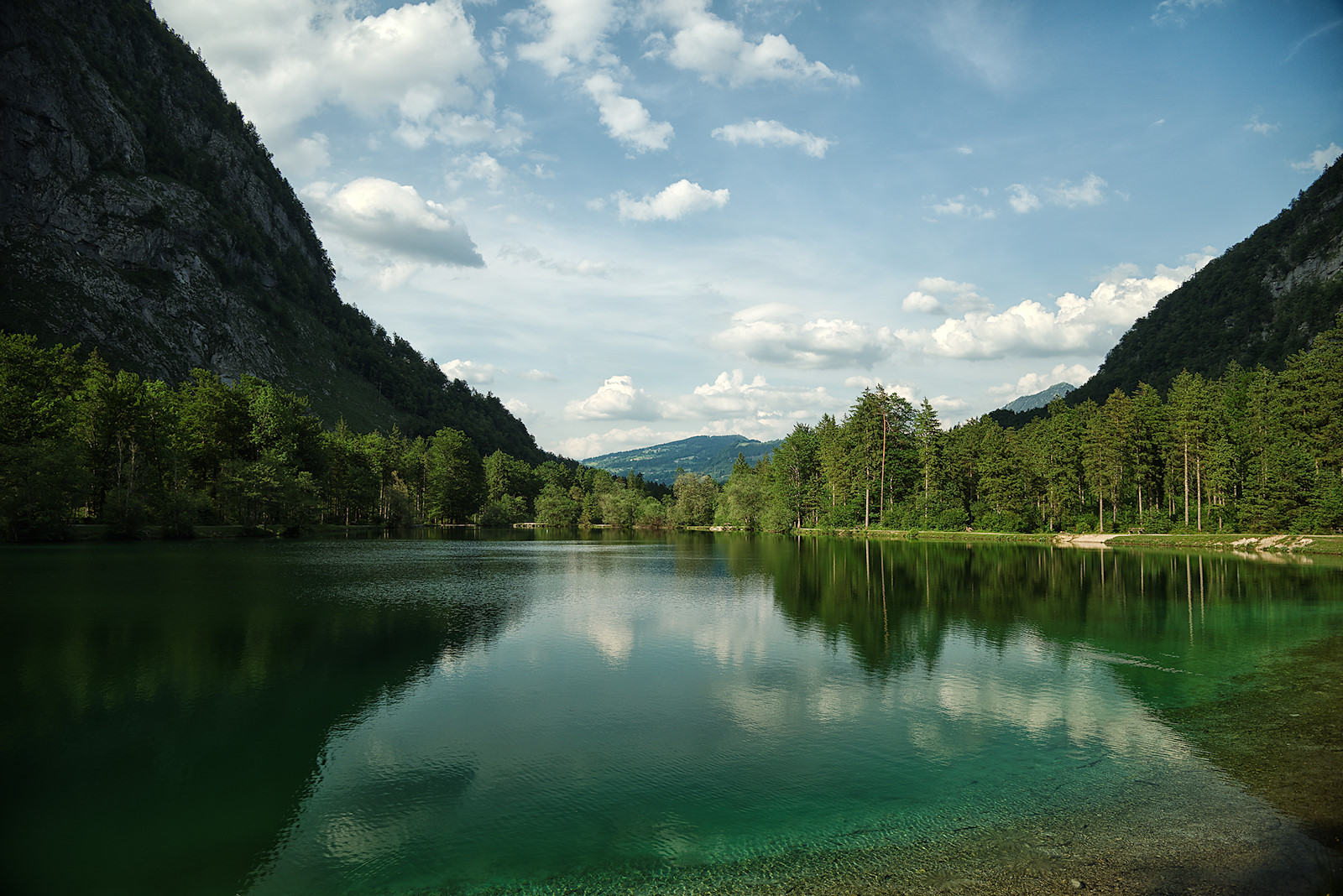 Nach der Umrundung folgen wir dem Weg zum Unteren Bluntausee und überqueren bald darauf eine weitere Brücke über den Torrener Bach. Der Forstweg auf der anderen Seite bringt uns wieder hinaus aus dem wunderbaren Bluntautal.