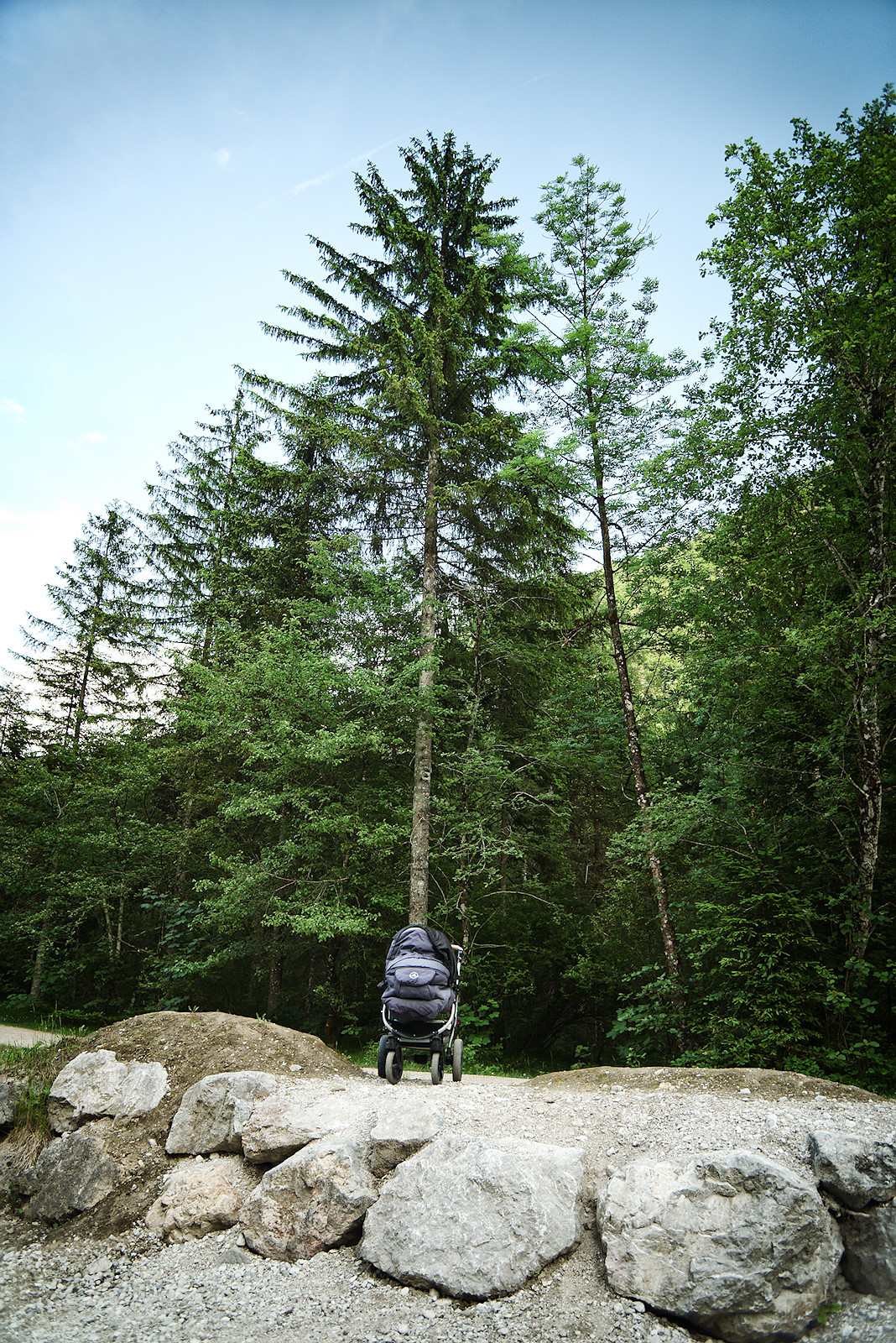 Letztere lassen wir aber rasch hinter uns, als wir zunächst der Straße durch Siedlungsgebiet zum Taleingang folgen. Wichtig für Kinderwägen: Ein Weiderost lässt sich rechts durch ein kleines Gatter umfahren.