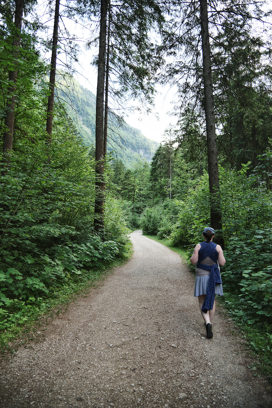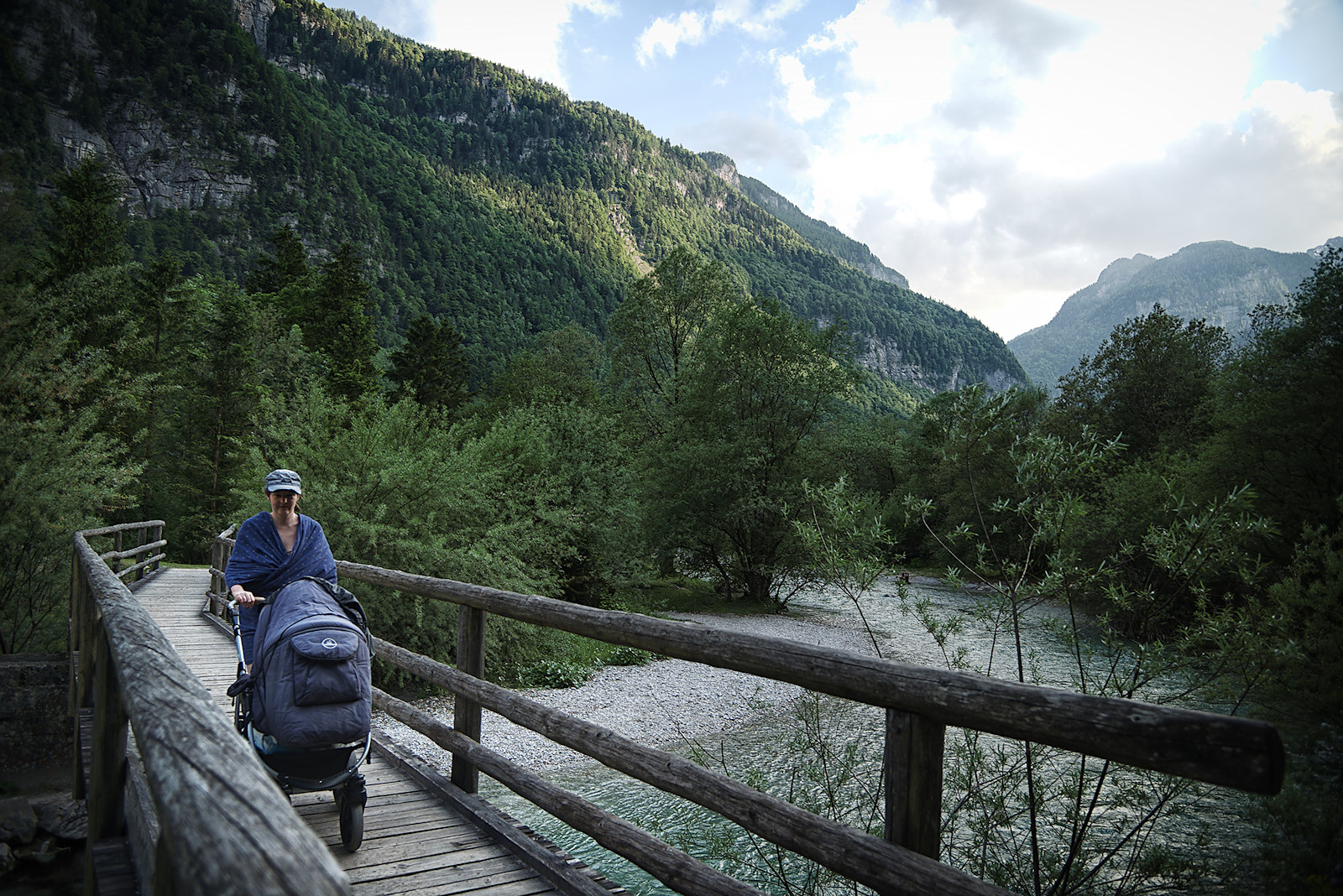 Wandern mit Kinderwagen im Bluntautal bei Golling an der Salzach.