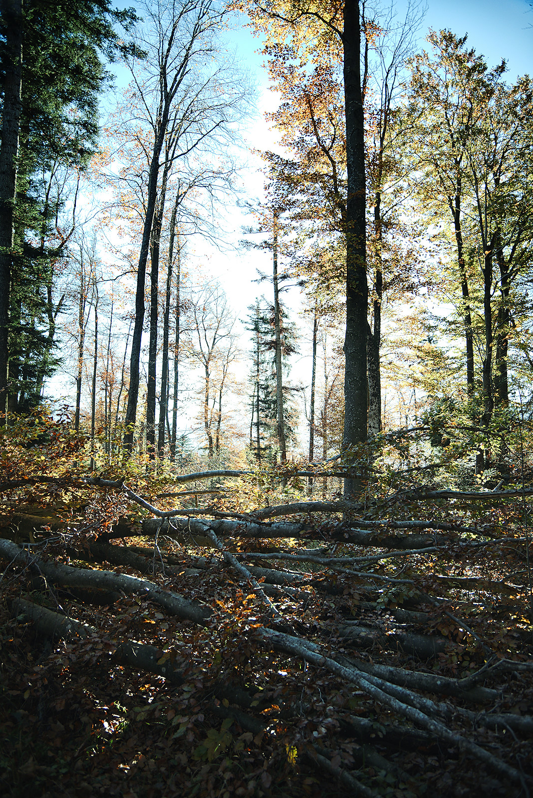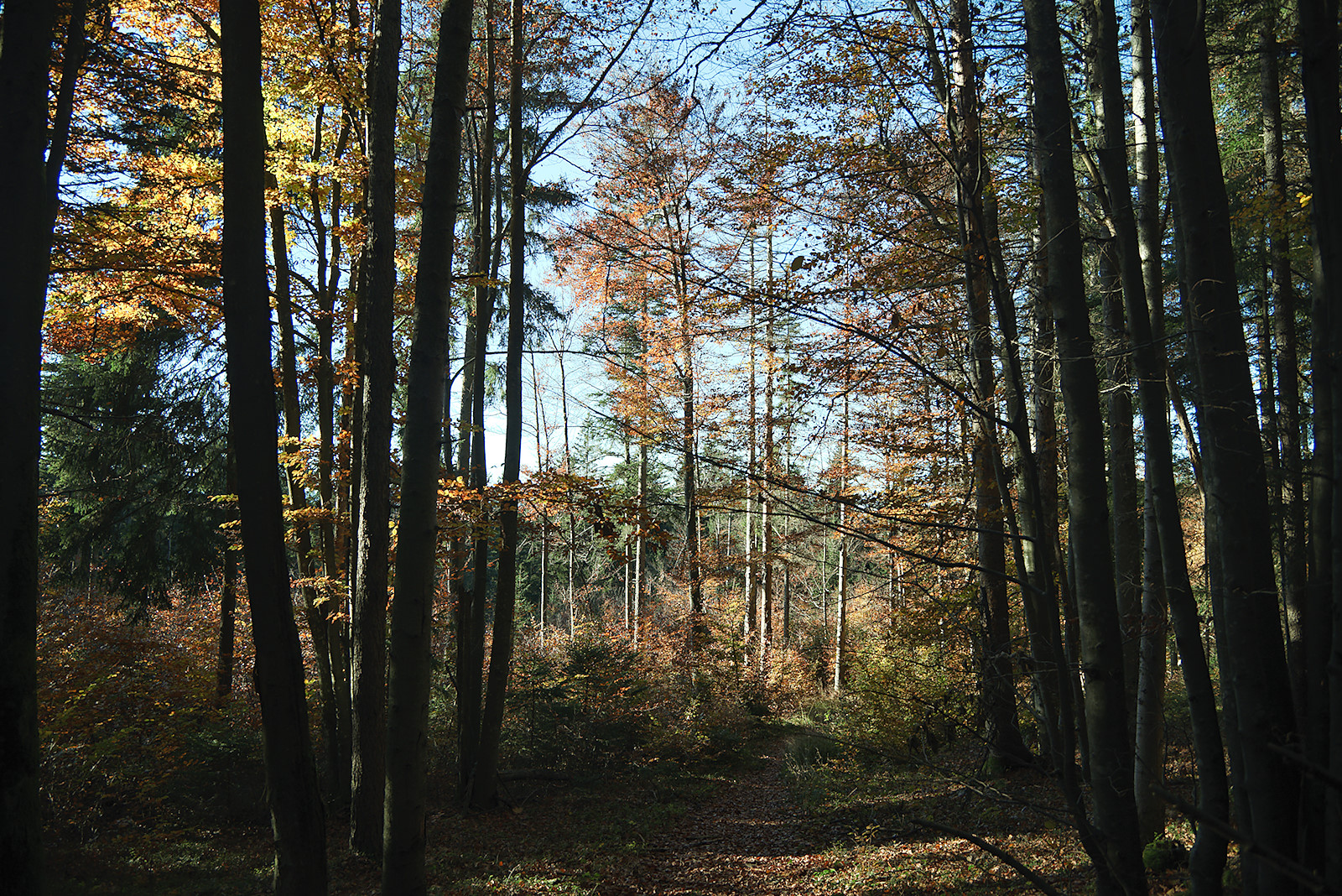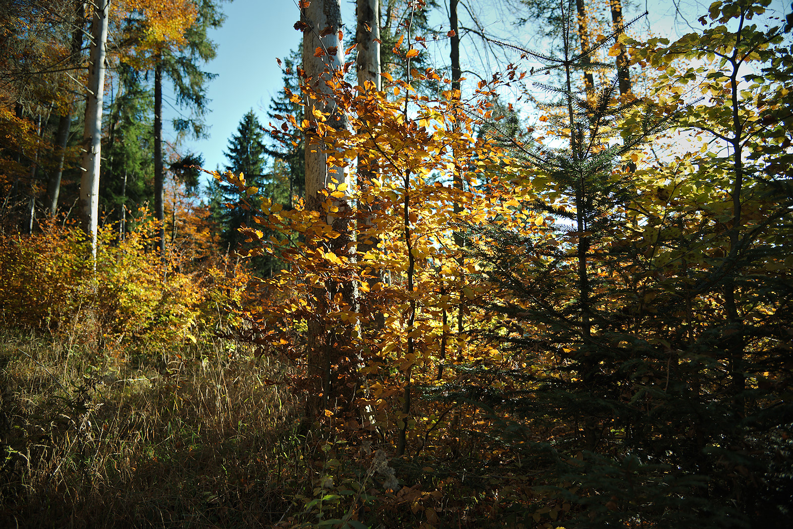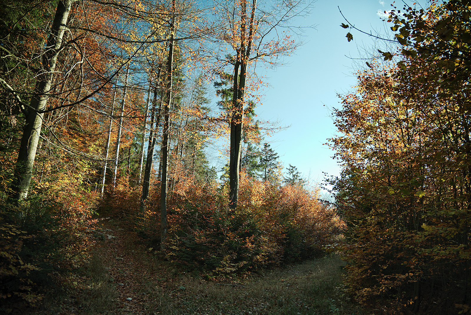 Ein wunderschöner Tag Anfang November. Der Herbst zeigt sich von seiner allerschönsten Seite. Reichlich spät dieses Jahr kleidet sich der Wald in den buntesten Farben. Aber besser spät als nie.