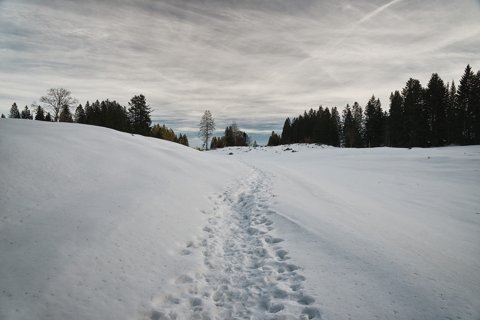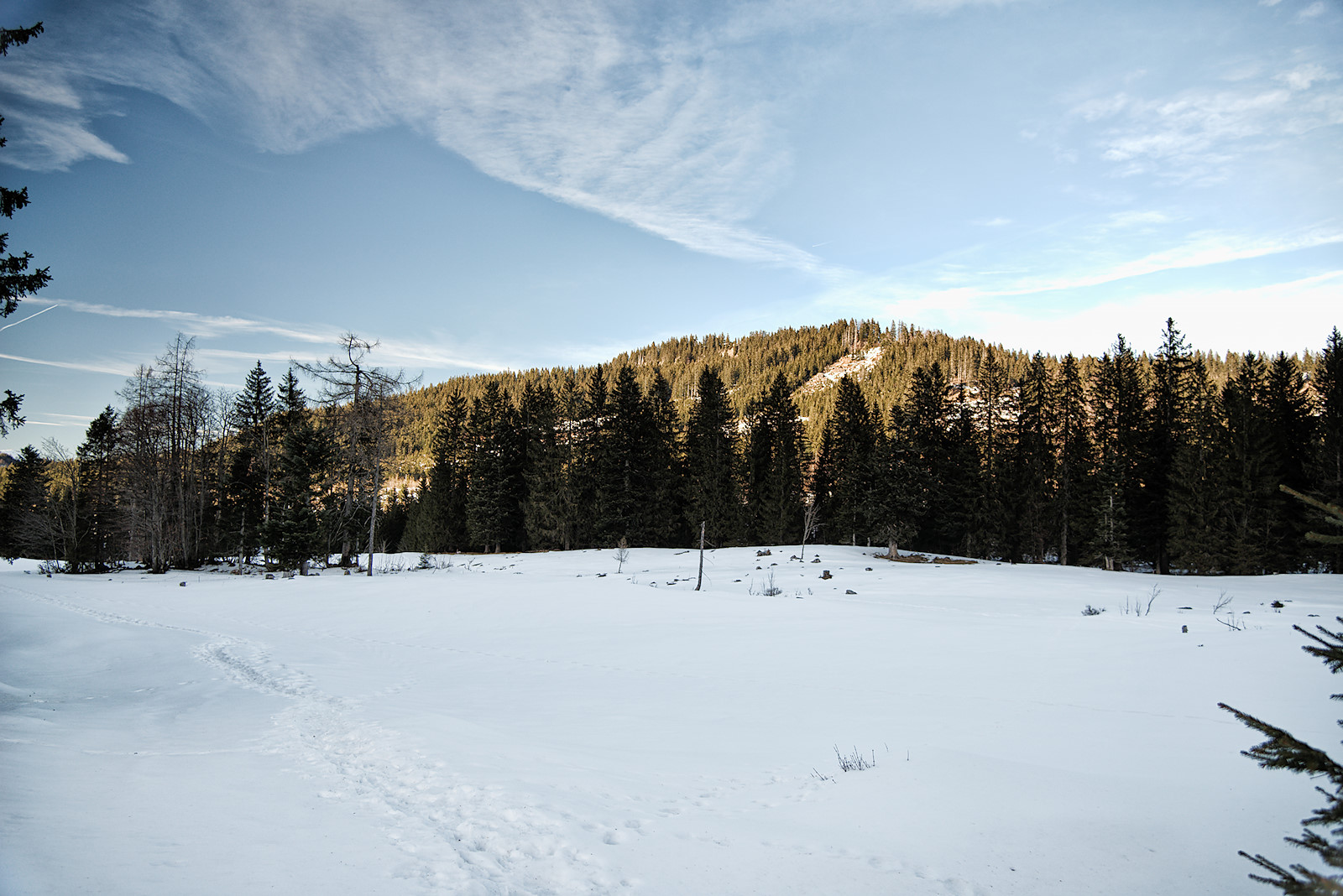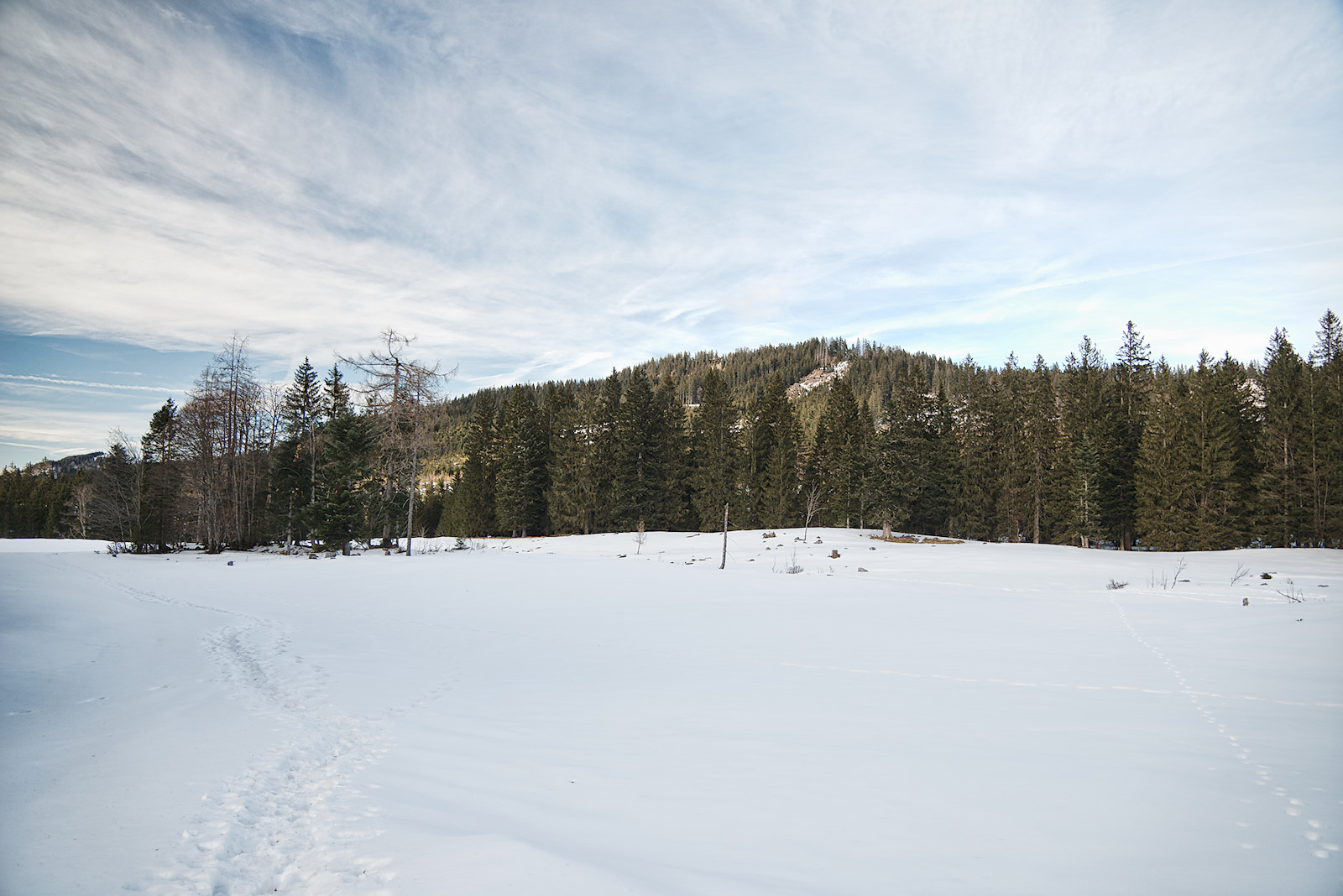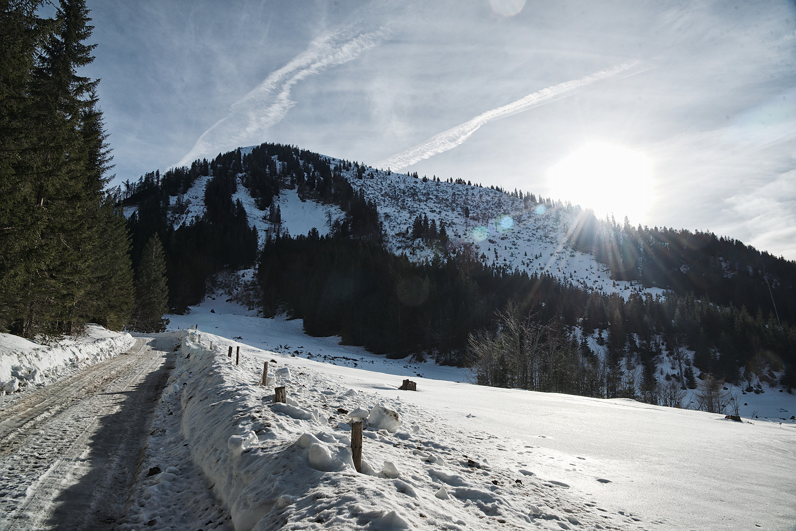 Wegbeschaffenheit: Wanderung auf (zumindest teilweise) schneebedeckten Forst- und Almwegen