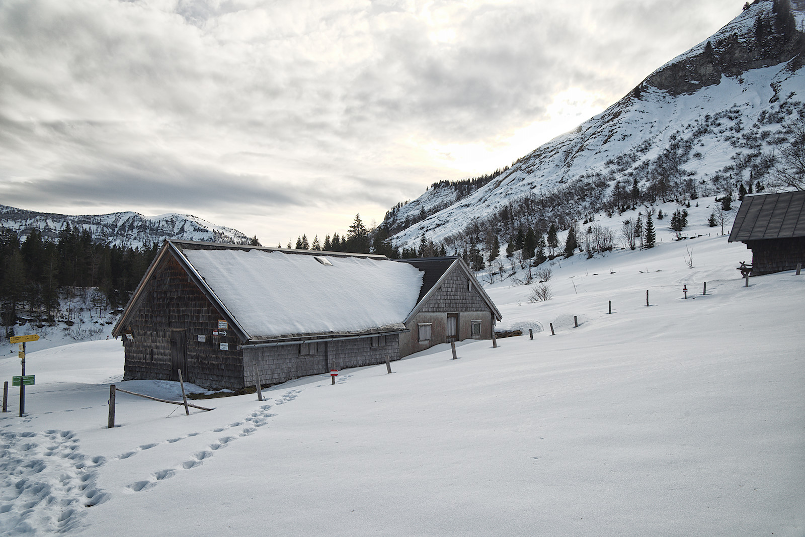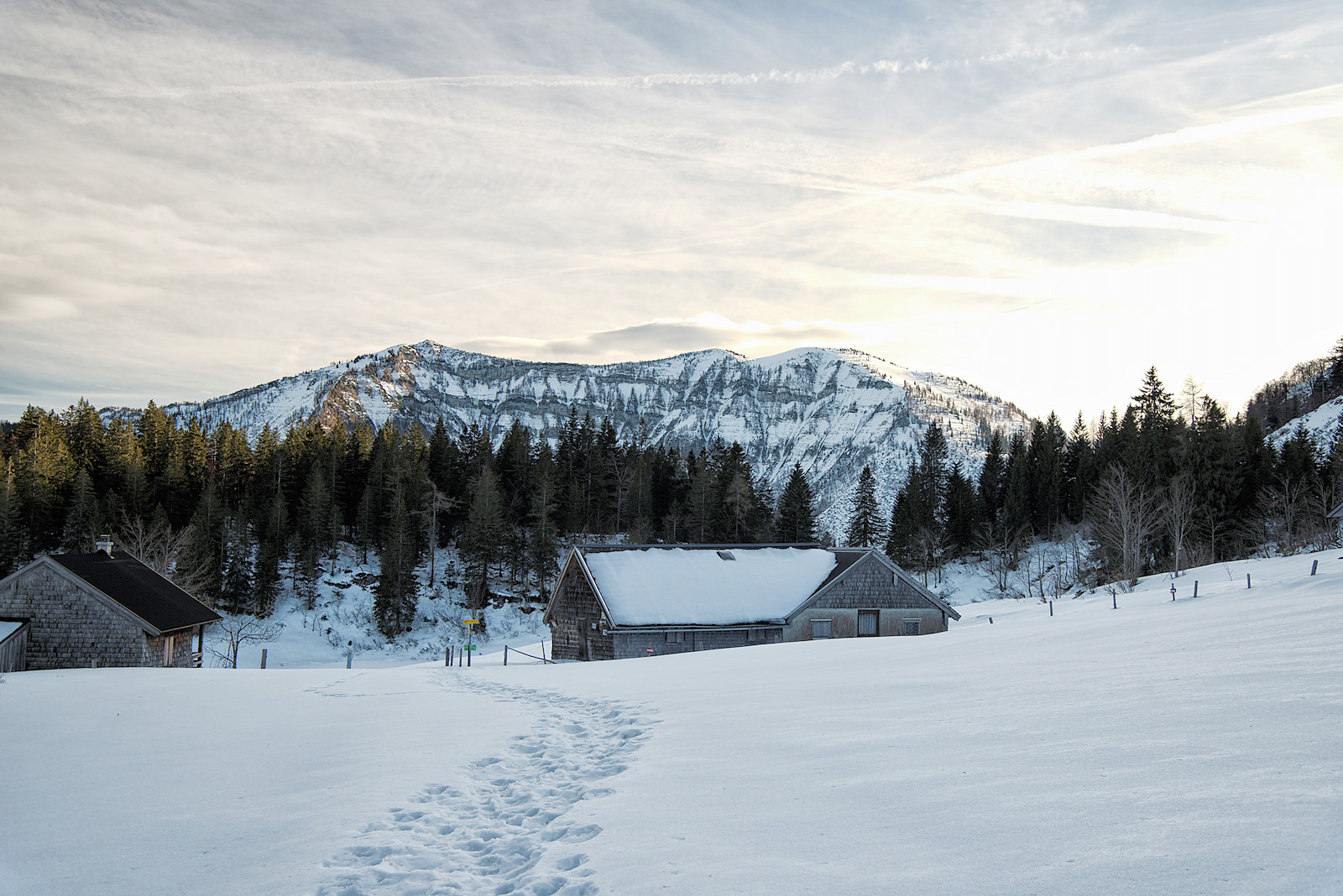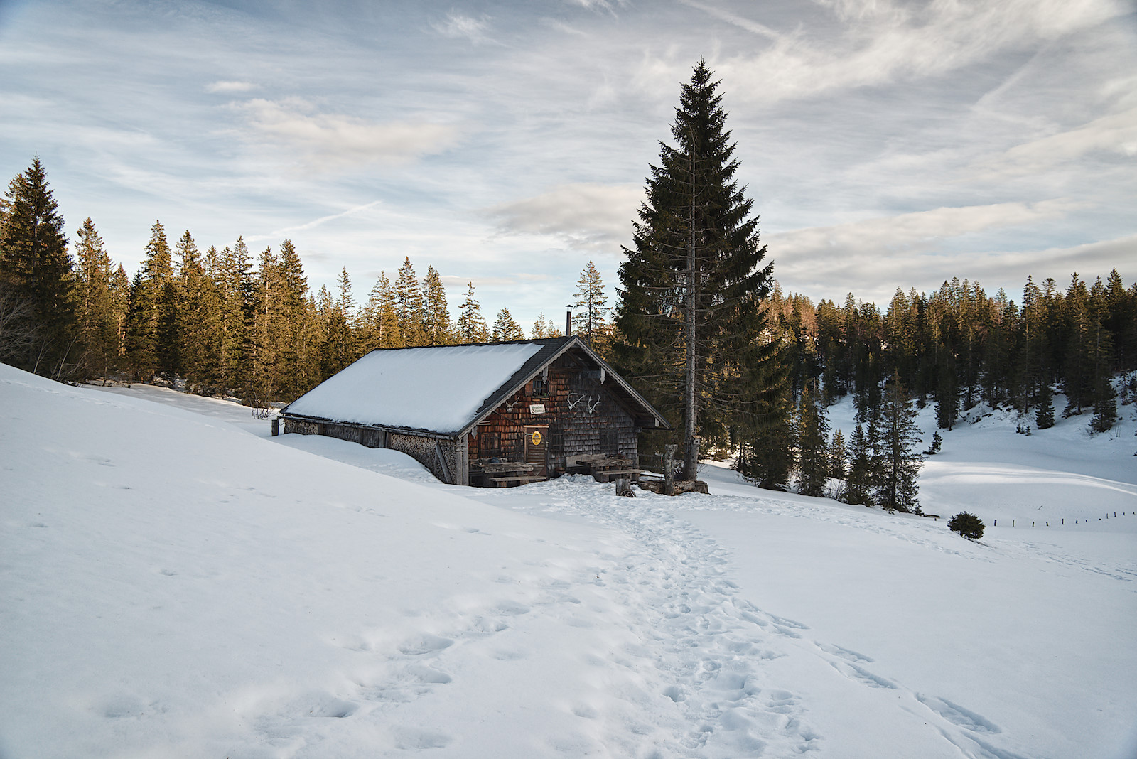 Wer Ruhe und Einsamkeit in einer fantastischen Winterlandschaft sucht, wird sie auf dieser abgeschiedenen Alm finden.